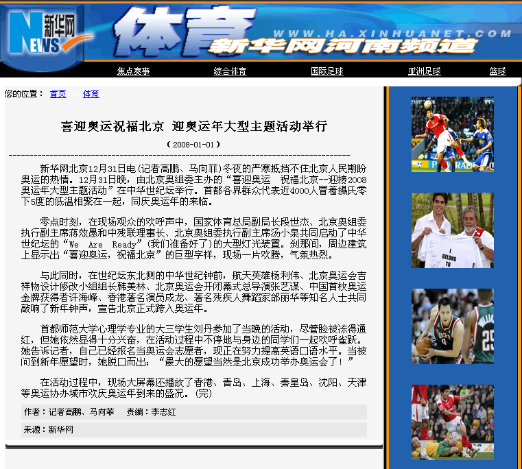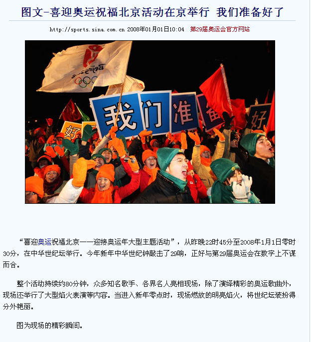 2007年12月31日,“喜迎奧運祝福北京”北京迎接2008奧運年大型主題活動在中華世紀壇舉行。